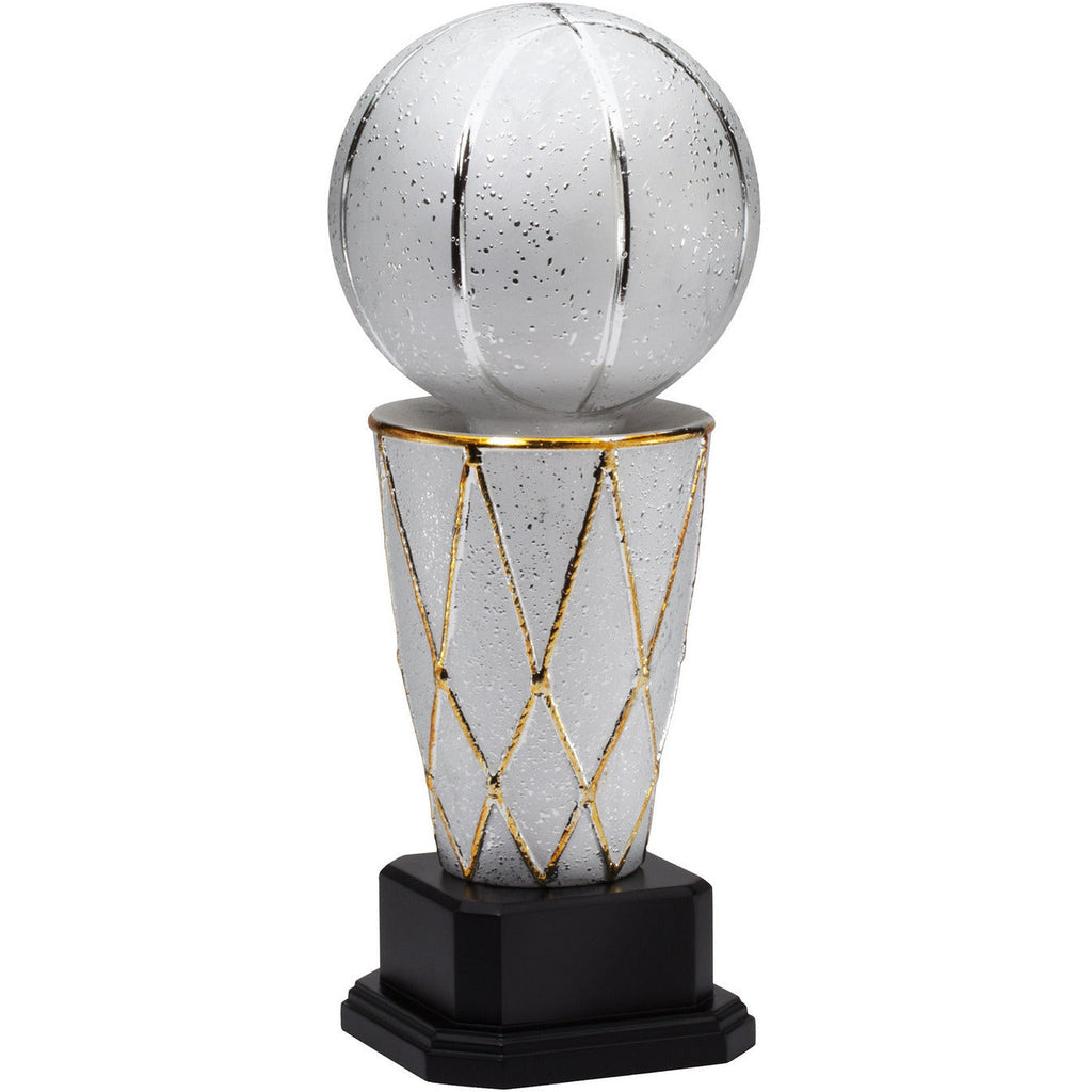 Introducing the Basketball Ceramic Sports Tower, an award designed to recognize exceptional achievements on the court. With its silver and gold finish, this elegant trophy is available in three sizes and comes with a personalized silver plate on an ebony pedestal. The perfect way to celebrate individual or team success.